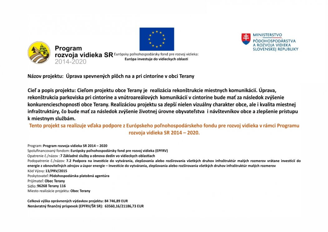 Úprava spevnených plôch na a pri cintoríne v obci Terany
